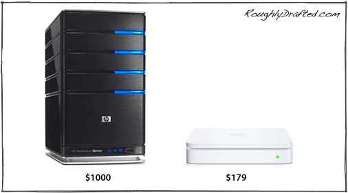 Apple's AirPort Extreme fits the same needs as Windows Home Server, but at a much lower price point: under $200 rather than around $1000.